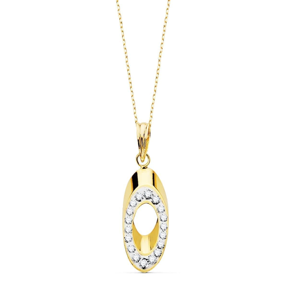 18K COLGANTE BICOLOR OVAL CIRCONITAS CON CADENA