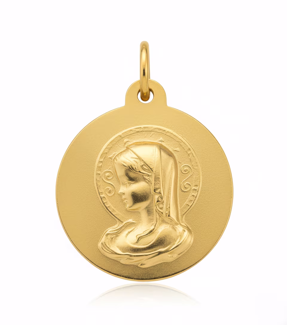 18K Medalla de oro Virgen Niña 18mm