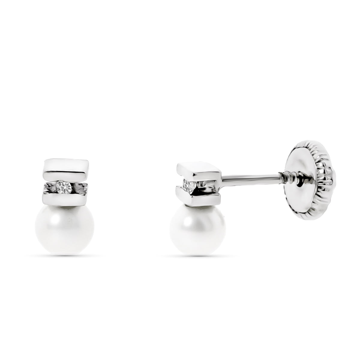 18K PENDIENTES ORO BLANCO CON BRILLANTES Y PERLAS