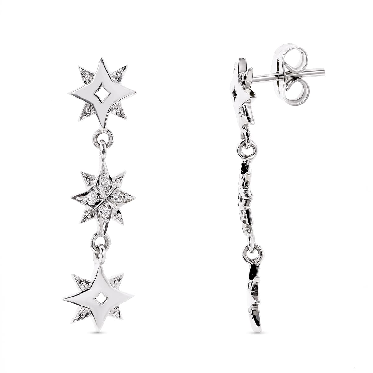 18K PENDIENTES ORO BLANCO ESTRELLAS Y CIRCONITAS 28X6 MM CIERRE PRESION
