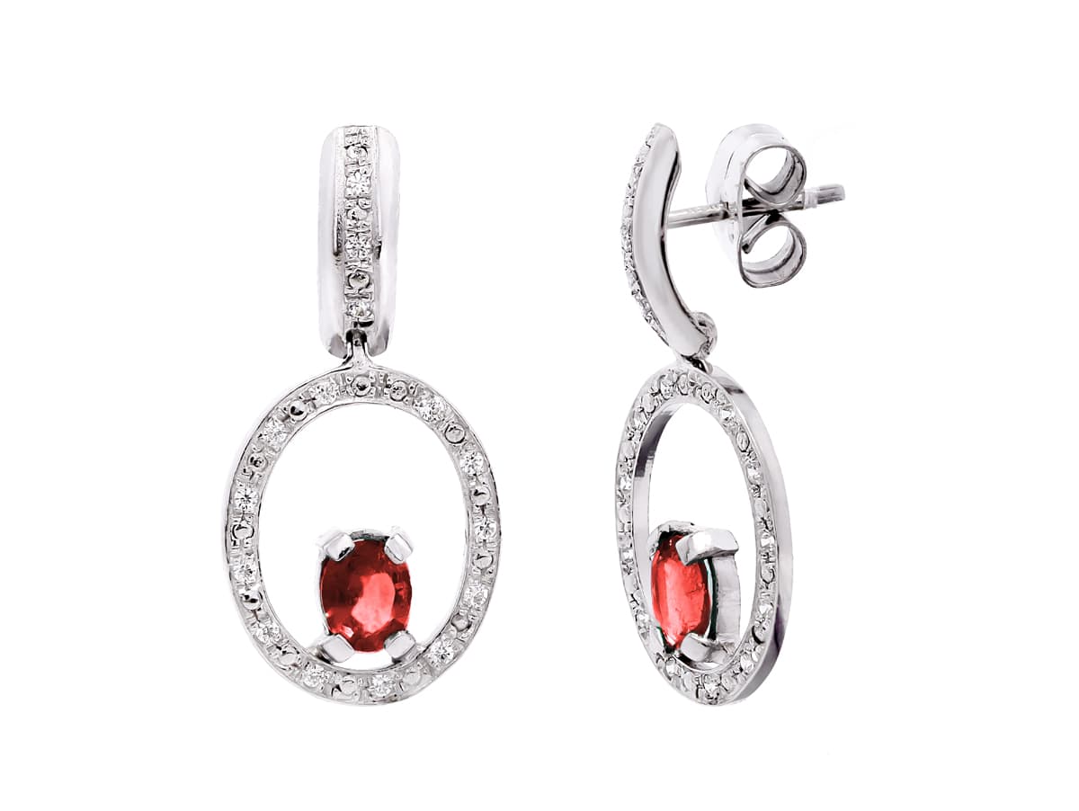 18K PENDIENTES ORO BLANCO RUBI Y CIRCONITAS