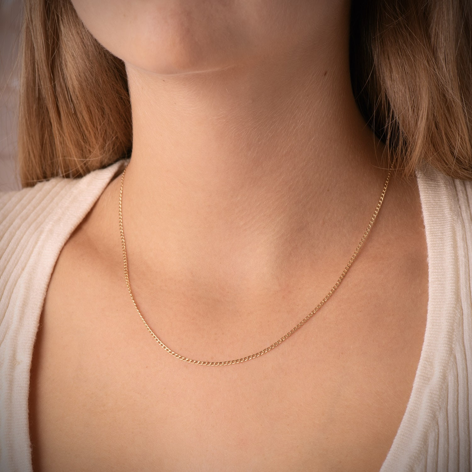 18K CADENA ORO AMARILLO BARBADA HUECA ANCHO 1 MM LONGITUD 45 CM