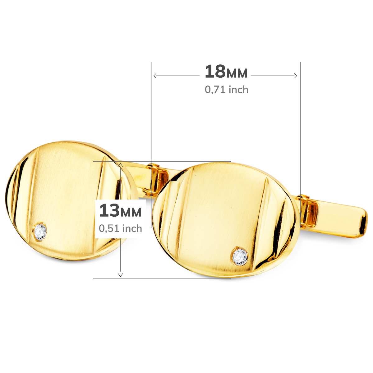 GEMELOS O.AMARILLO OVAL MATE/BRILLO 18X13MM. CIRCONITAS CIERRE RÍGIDO OSCILANTE