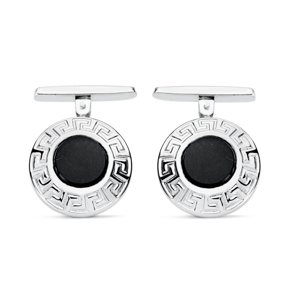 18K GEMELOS ORO BLANCO GRECA Y ONIX CON CADENA