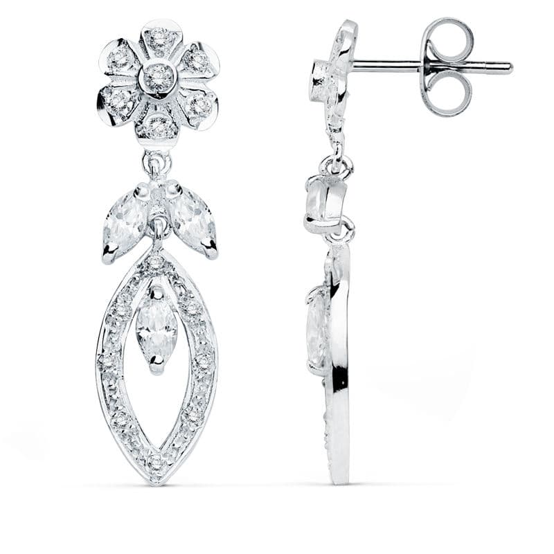 18K PENDIENTES ORO BLANCO CIRCONITAS 30X8 MM