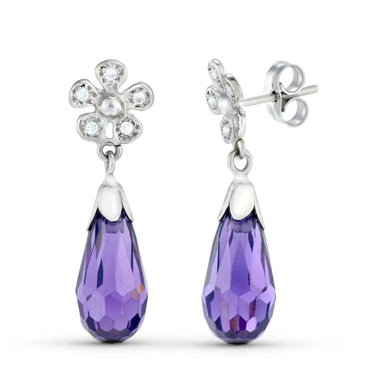 18K PENDIENTES ORO BLANCO DOS CUERPOS CON FLOR Y PIEDRA. CIERRE PRESION